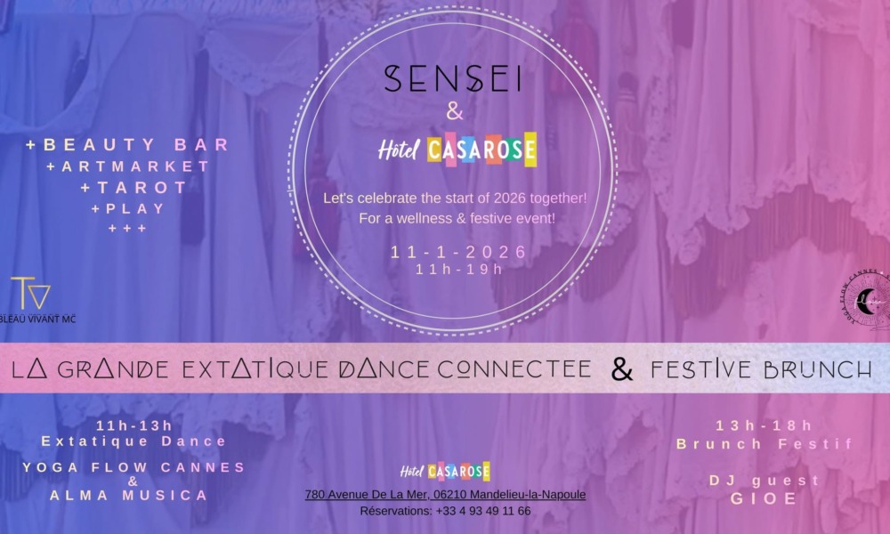 · Comprend : Slow Flow Yoga, Ecstatic Dance, Voyage Sonore aux bols de cristal 432Hz, Casque audio, Eaux détox offertes.