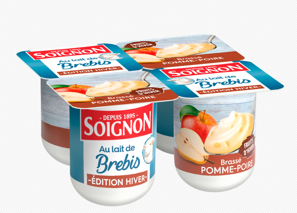 En bonus pour compléter le petit déjeuner, dégustez un yaourt Soignon au lait de brebis ! Après le succès de la version estivale, la marque dévoile la version hivernale avec un brassé pomme-poire au lait de brebis, une édition limitée qui célèbre les fruits de saison.